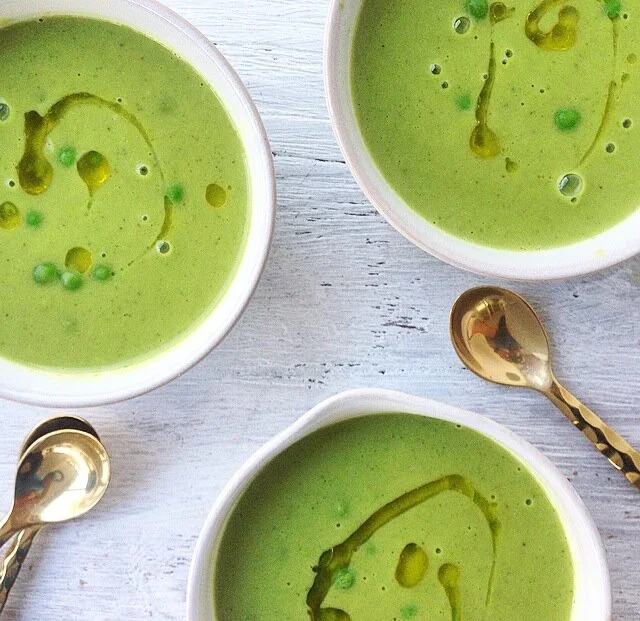 Add the cup of peas you set aside to the blended soup. If the peas were frozen, you might want to add soup back to the pot and heat for a few minutes until the peas are defrosted. Serve and enjoy!